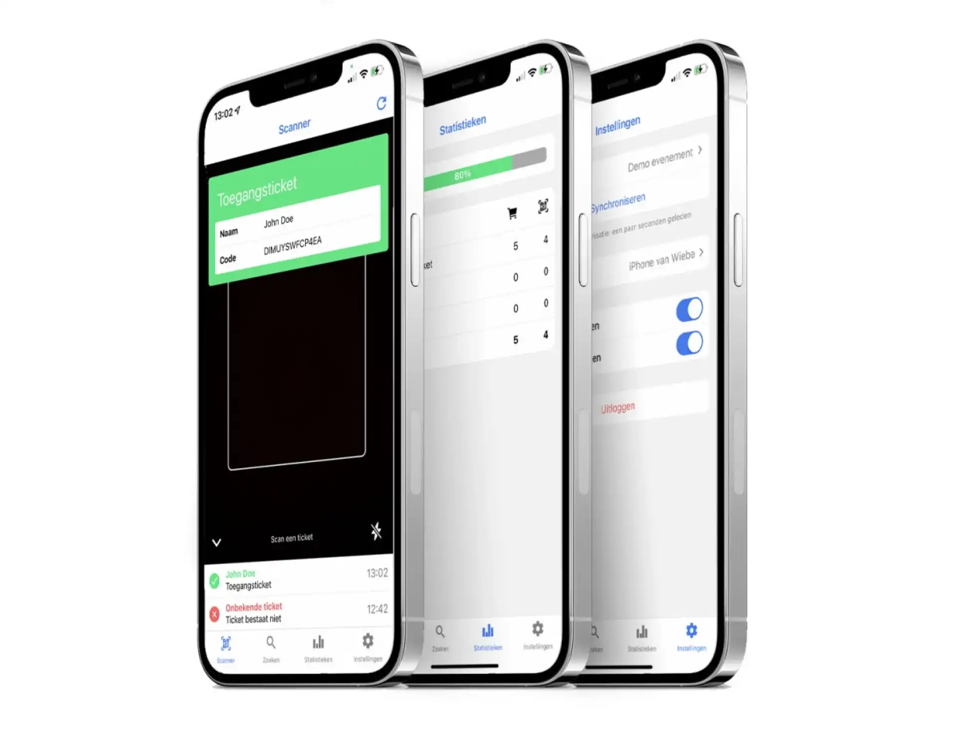Voor kleine evenementen tot 2000 bezoekers bieden we je een scan-app die zowel geschikt is voor iOS- als voor Androidtoestellen. Je kunt eenvoudig inloggen met een gebruikersnaam en wachtwoord. Medewerkers krijgen eenvoudig toegang tot de app met een pincode. Voor deze toegangscontrole is internetverbinding een vereiste. Toch is een kleine storing geen probleem. De scan-app heeft namelijk altijd toegang tot alle verkochte tickets. Scan je een ticket, maar heb je op dat moment geen verbinding? De app synchroniseert automatisch als je wel weer online bent.